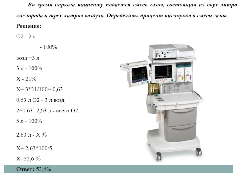 Решение: По формуле: X=(50*40%):96%=21 мл