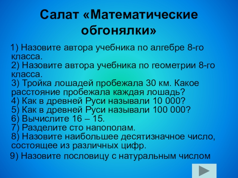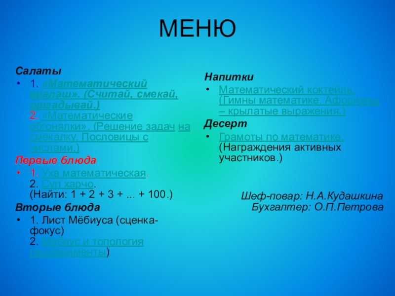 Математический коктейль. (Гимны математике. Афоризмы – крылатые выражения.)