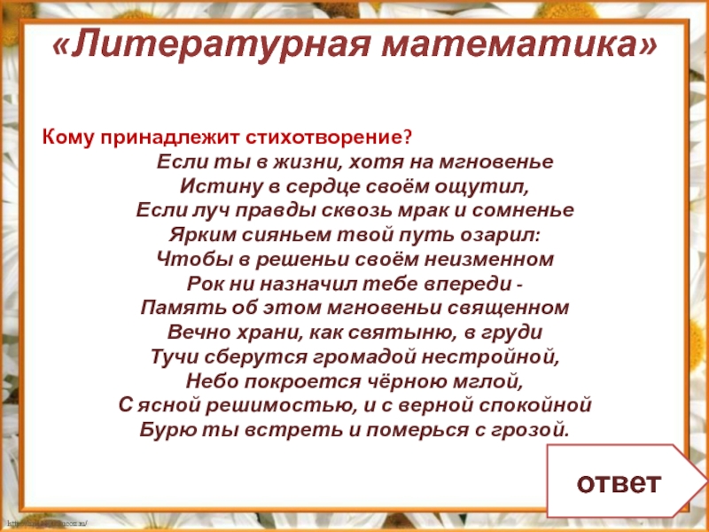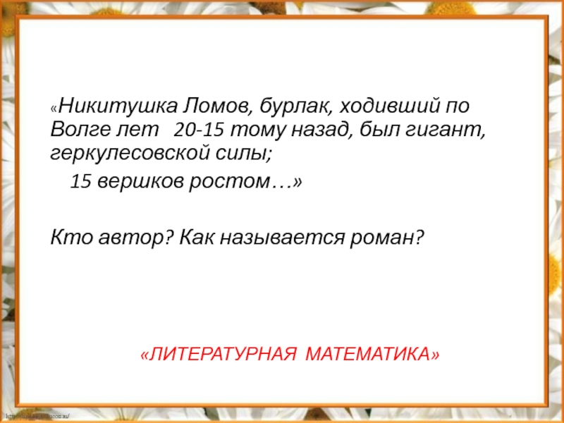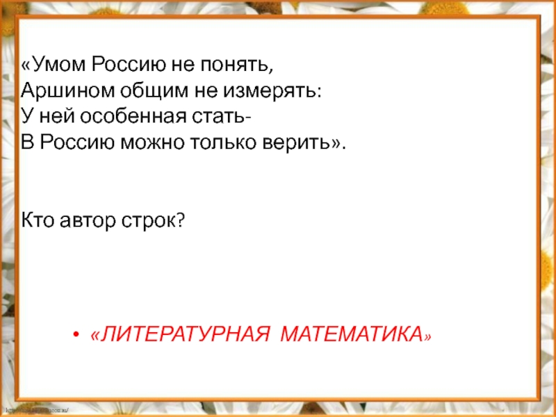 «ЛИТЕРАТУРНАЯ МАТЕМАТИКА»