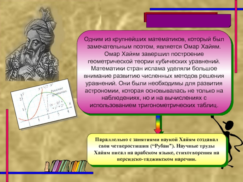 Одним из крупнейших математиков, который был замечательным поэтом, является Омар Хайям.