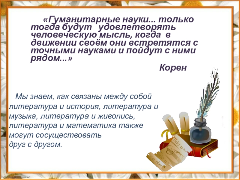 «Гуманитарные науки... только тогда будут удовлетворять человеческую мысль, когда в движении своём они встретятся с точными науками и пойдут с ними рядом...»
