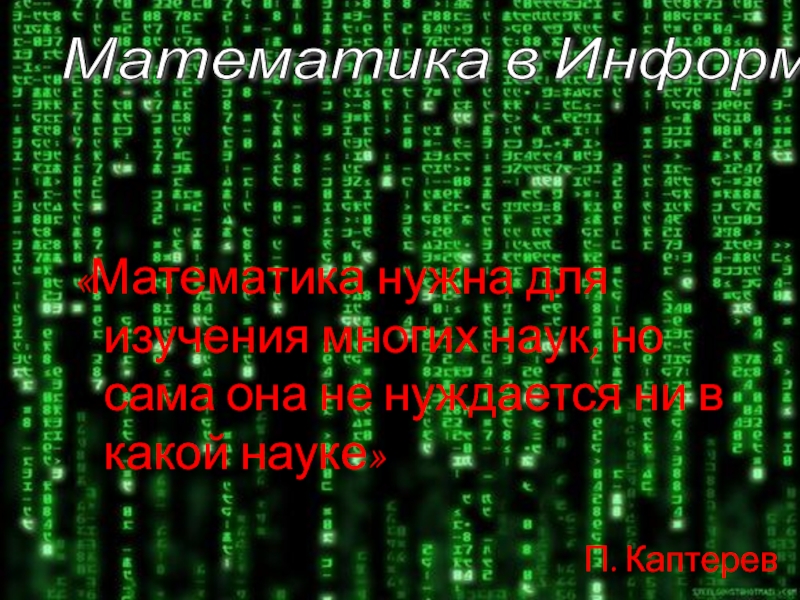 Слайд 21 Информатика использует методы математики для построения и изучения моделей