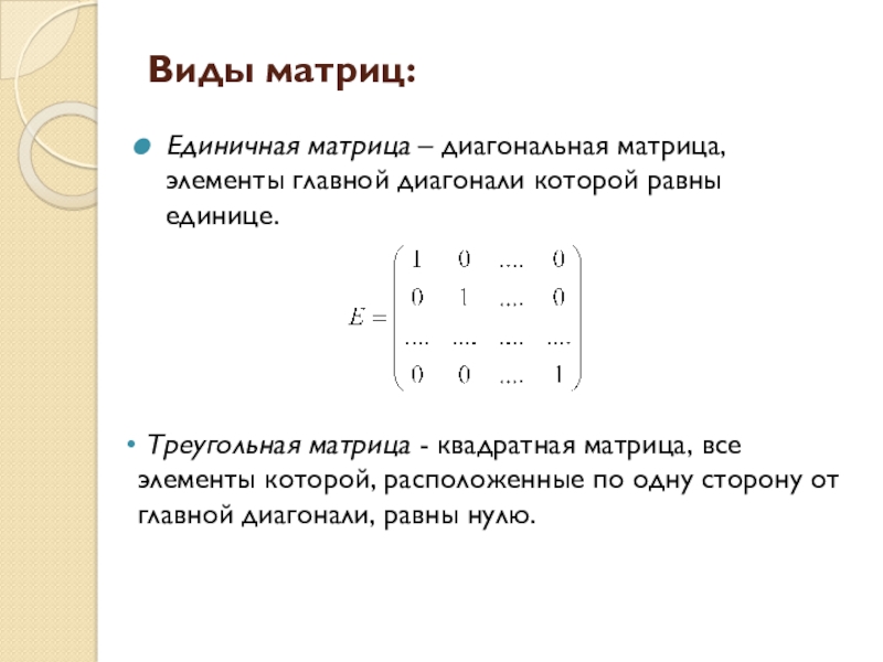 Треугольная матрица - квадратная матрица, все элементы которой, расположенные по одну сторону от главной диагонали, равны нулю.