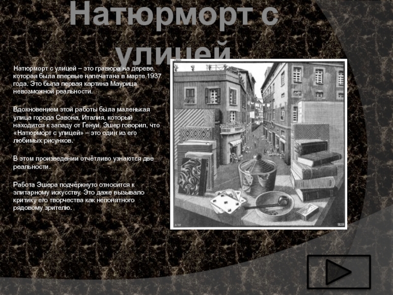 Слайд 5Натюрморт с улицей