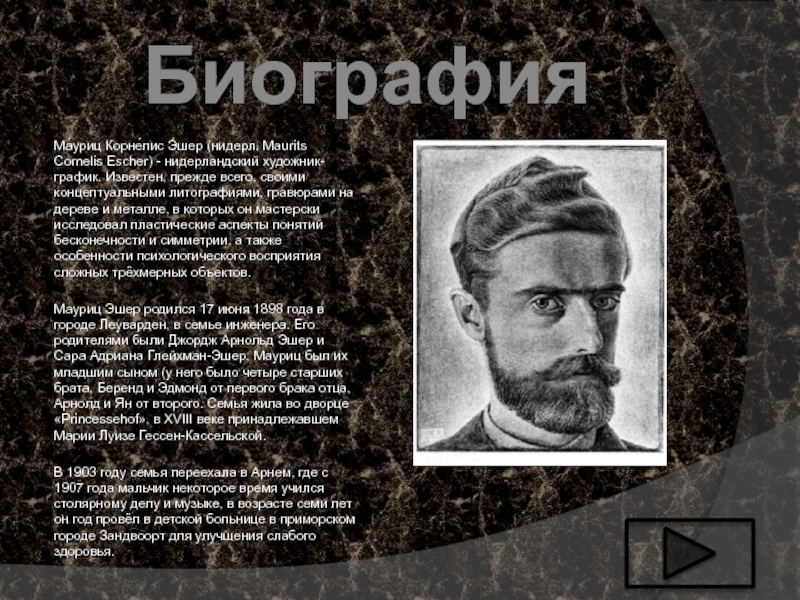 Слайд 1Ма́уриц Корне́лис Э́шер