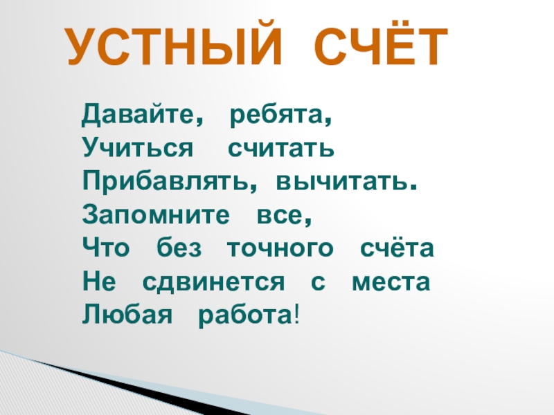 УСТНЫЙ СЧЁТ