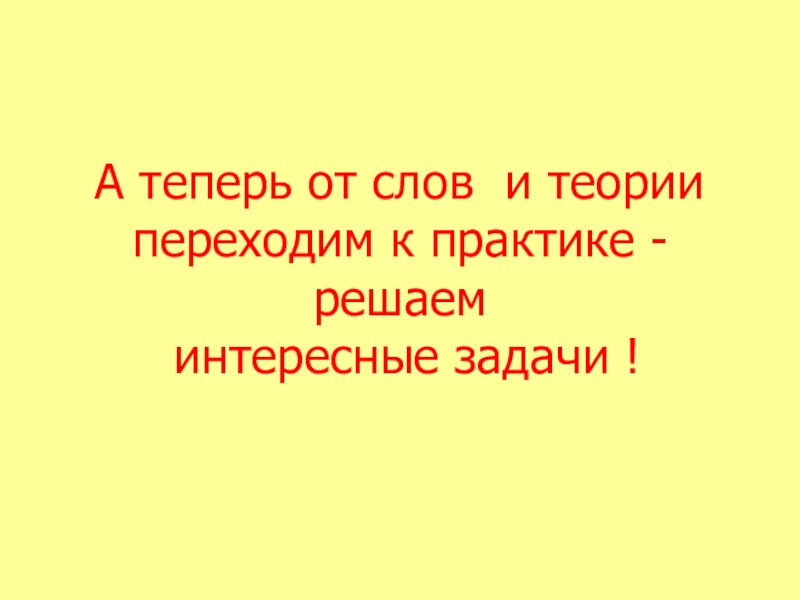 Слайд 12 А теперь от слов и теории переходим к практике - решаем