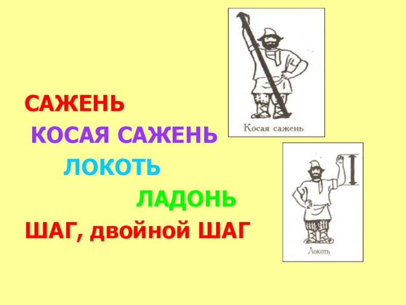 САЖЕНЬ КОСАЯ САЖЕНЬ   ЛОКОТЬ         ЛАДОНЬШАГ, двойной ШАГ