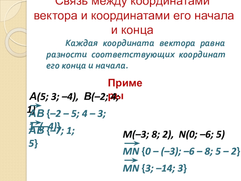 Каждая координата разности двух векторов равна разности соответствующих координат этих векторов.