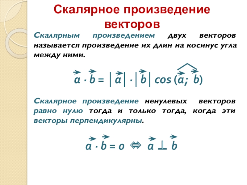 Скалярное произведение ненулевых векторов равно нулю тогда и только тогда, когда эти векторы перпендикулярны.