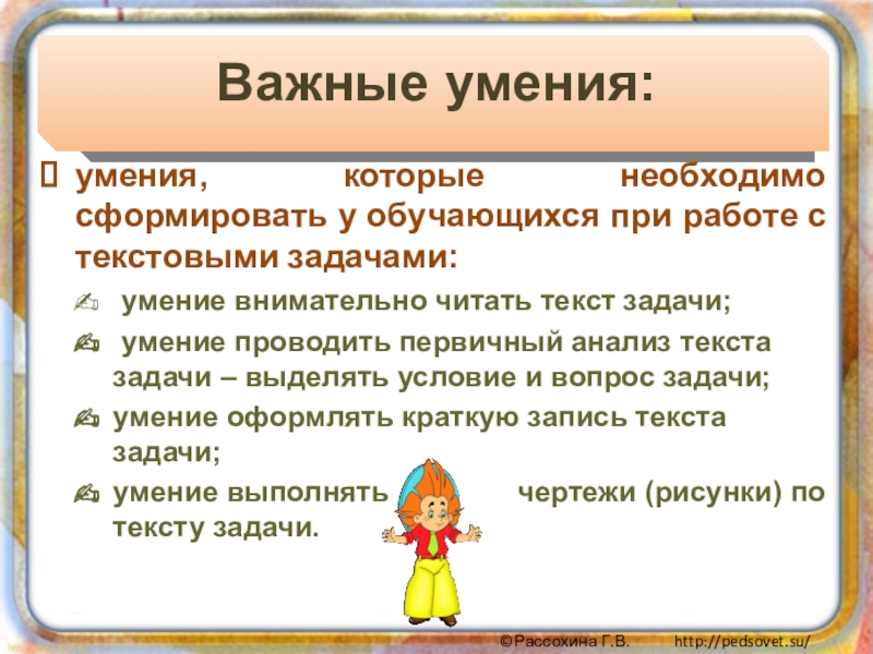 выделять условие, его элементы и требование задачи и его элементы;
