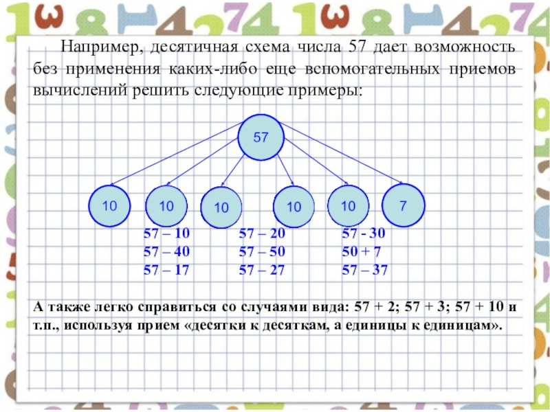 Слайд 12 Например, десятичная схема числа 57 дает возможность без применения каких-либо еще