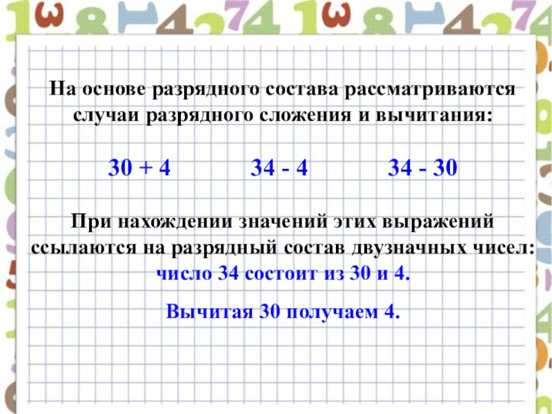 Слайд 8На основе разрядного состава рассматриваются случаи разрядного сложения и вычитания: