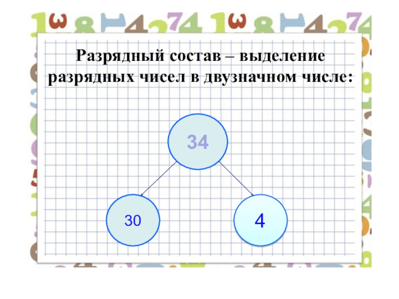 Слайд 7Разрядный состав – выделение разрядных чисел в двузначном числе: