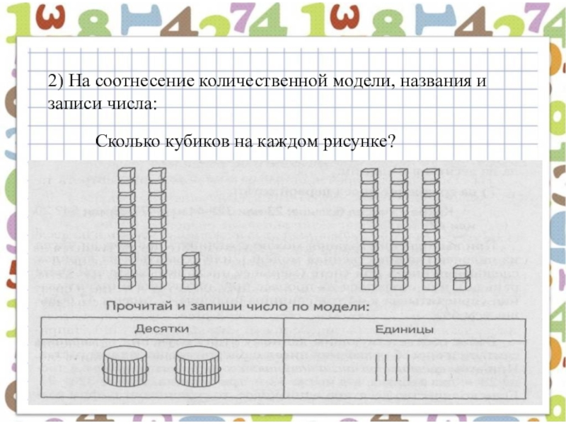 Слайд 152) На соотнесение количественной модели, названия и записи числа: