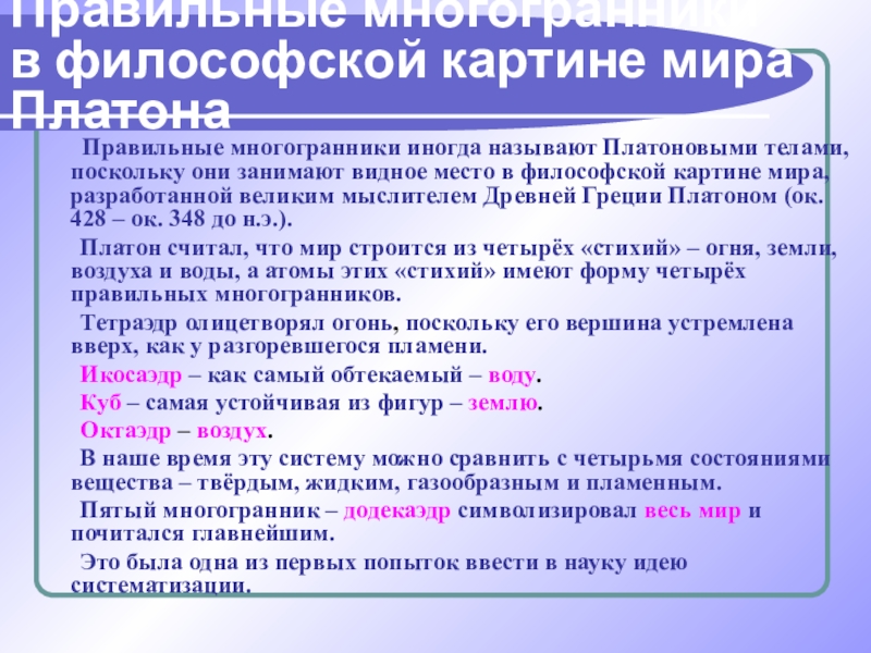 в философской картине мира Платона