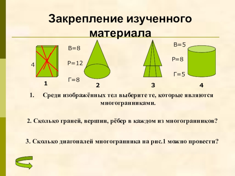 3. Сколько диагоналей многогранника на рис.1 можно провести?