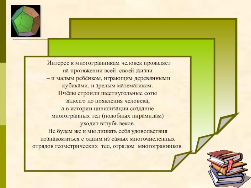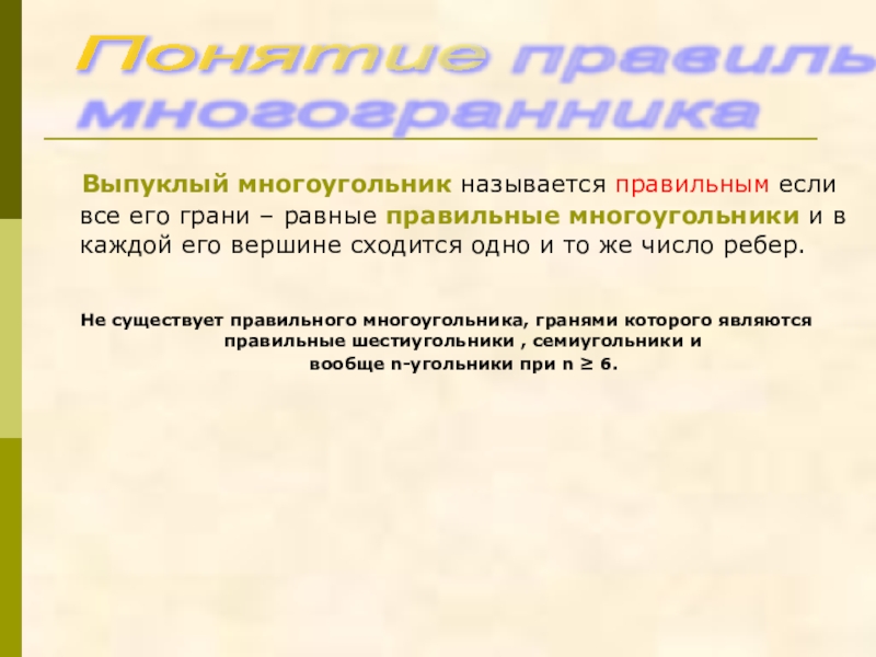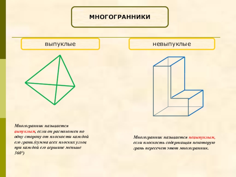 Многогранник называется невыпуклым, если плоскость содержащая некоторую грань пересечет этот многогранник.