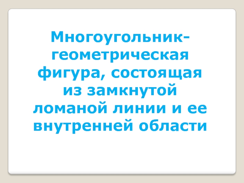 Многоугольник-геометрическая фигура, состоящая из замкнутой ломаной линии и ее внутренней области