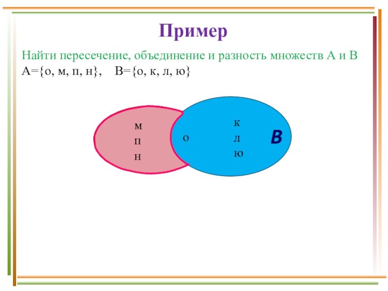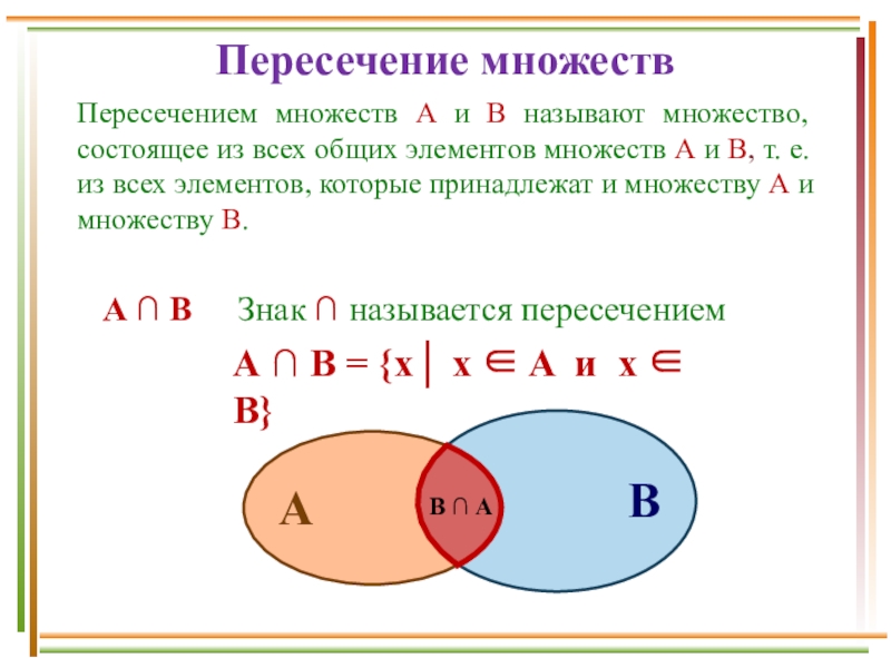 А В = {x│ x A и x B}