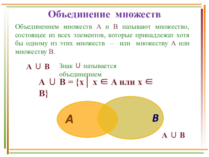 А В = {x│ x A или x B}