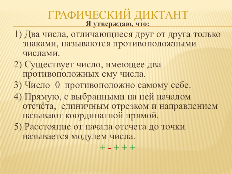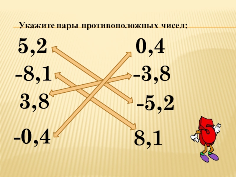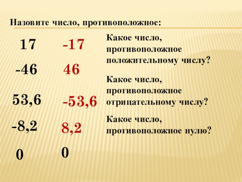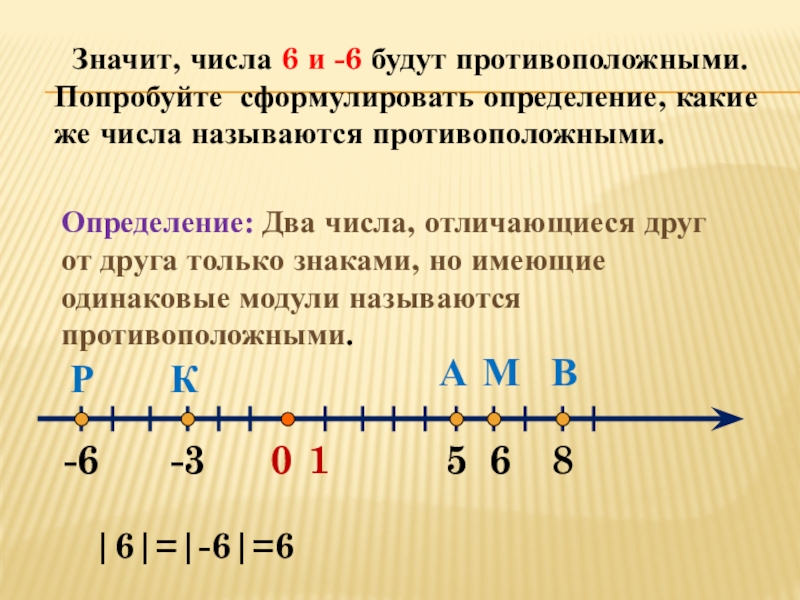 Определение: Два числа, отличающиеся друг от друга только знаками, но имеющие одинаковые модули называются противоположными.