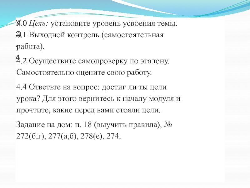 6) возможность самоконтроля и самооценки; 7)формирование самостоятельности и навыков учебной деятельности.