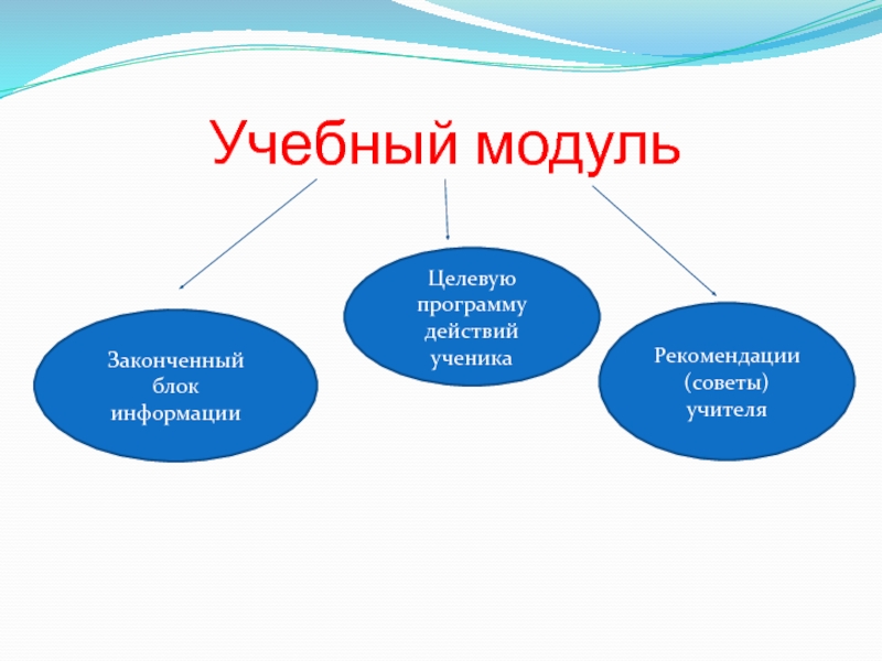 Учебный модульРекомендации (советы) учителяЦелевую программу действий ученикаЗаконченный блок информации