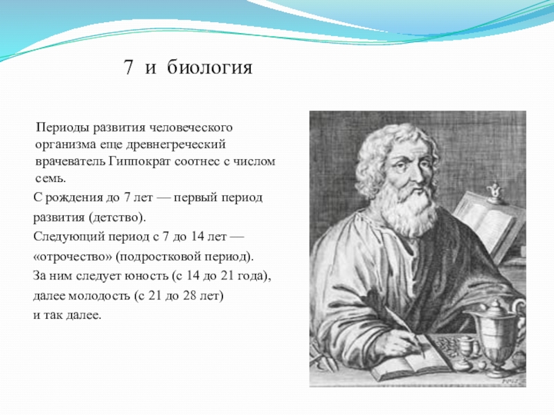 Периоды развития человеческого организма еще древнегреческий врачеватель Гиппократ соотнес с числом семь.