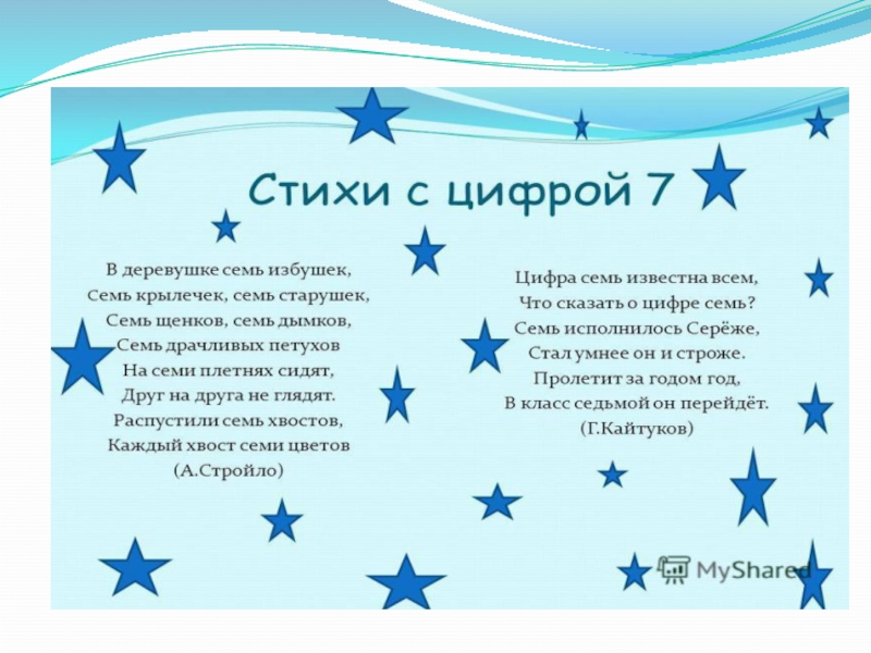 В ходе данного проекта я изучила материал о созвездиях, о радуге, о семи чудесах света, рассмотрела поговорки, загадки и пословицы, где имеется число семь.