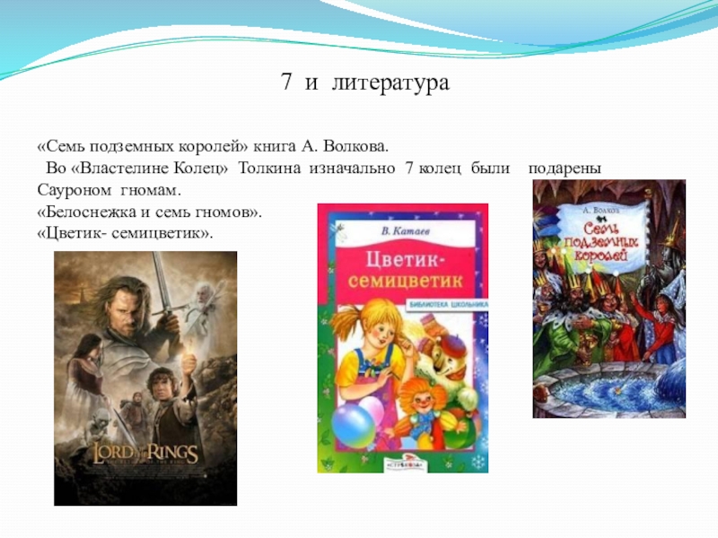Во «Властелине Колец» Толкина изначально 7 колец были подарены Сауроном гномам.
