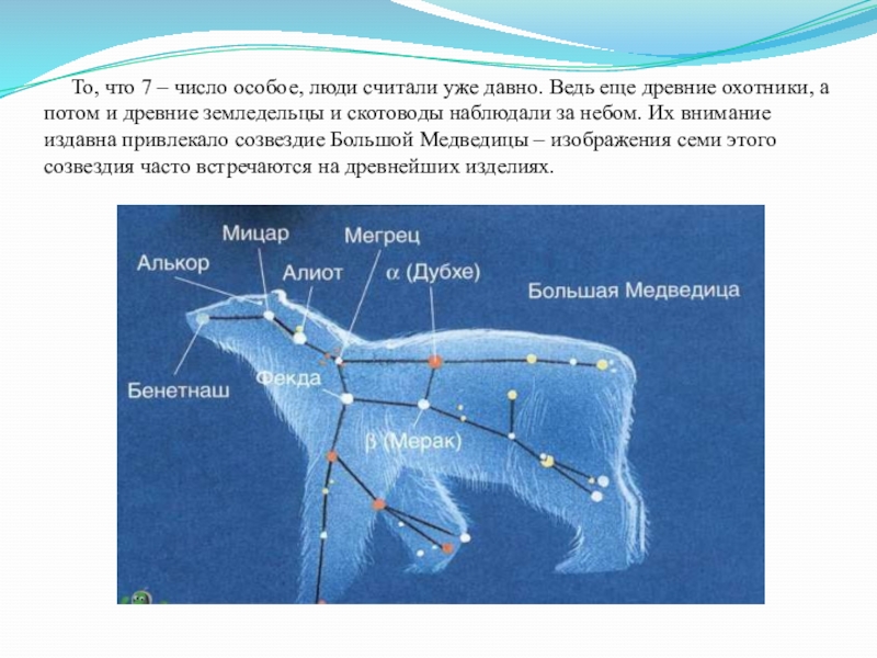 уже давно. Ведь еще древние охотники, а потом и древние земледельцы и скотоводы наблюдали за небом. Их внимание издавна привлекало созвездие Большой Медведицы – изображения семи этого созвездия часто встречаются на древнейших изделиях.
