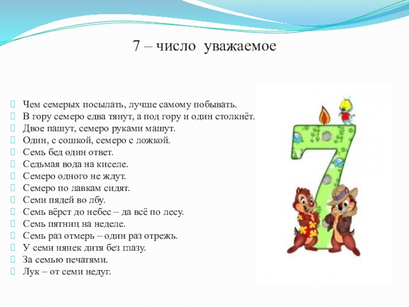 в древности была окружена семерка. Отголоски почитания этого числа дошли и до наших дней.