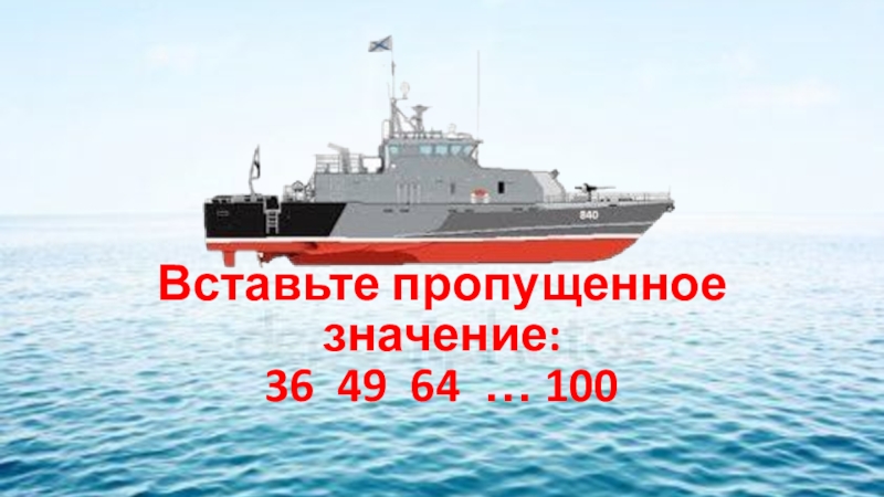 Слайд 6Вставьте пропущенное значение: 36 49 64 … 100