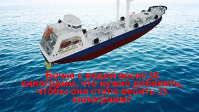 Слайд 16Бочка с водой весит 50 килограмм, что нужно добавить, чтобы она