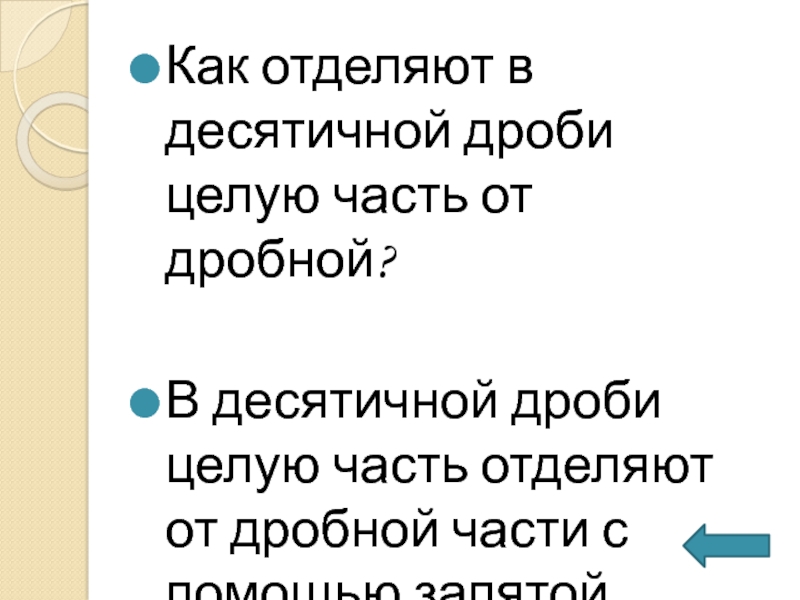 Слайд 10Как отделяют в десятичной дроби целую часть от дробной?