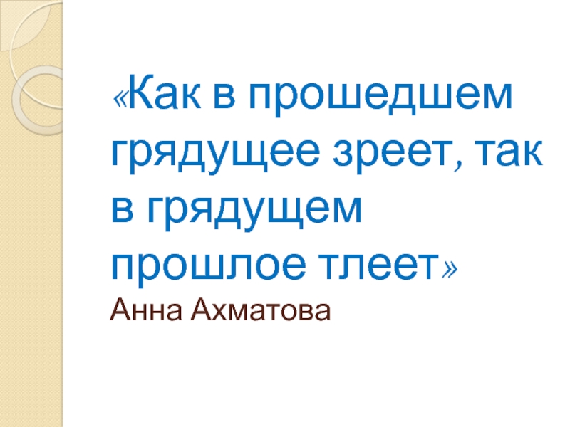 Слайд 2«Как в прошедшем грядущее зреет, так в грядущем прошлое тлеет»