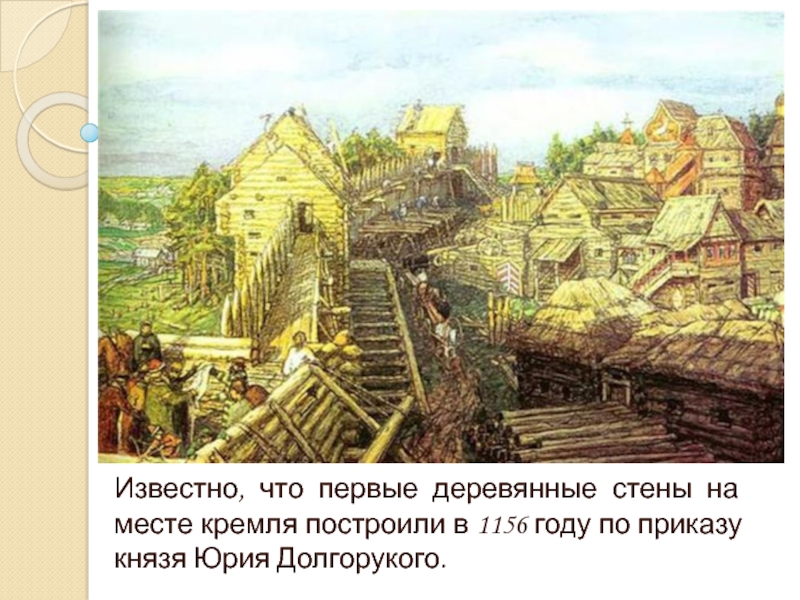 Слайд 14Известно, что первые деревянные стены на месте кремля построили в 1156