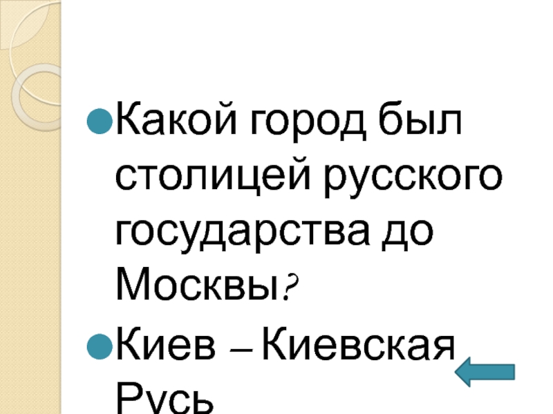 Слайд 8Какой город был столицей русского государства до Москвы?