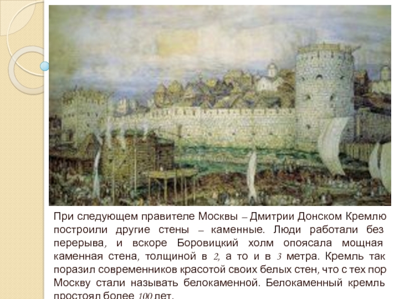 Слайд 18При следующем правителе Москвы – Дмитрии Донском Кремлю построили другие стены