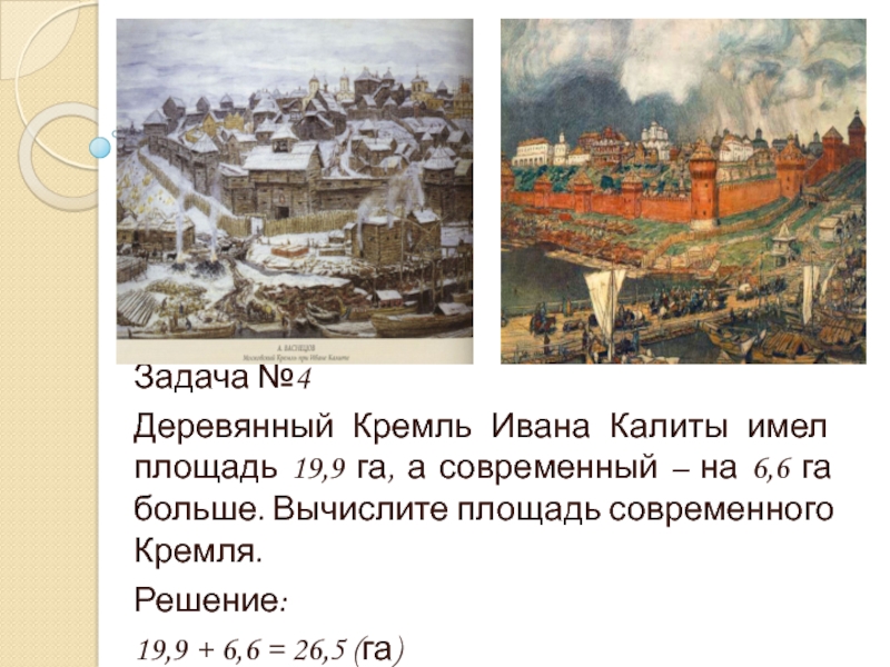 – на 6,6 га больше. Вычислите площадь современного Кремля.