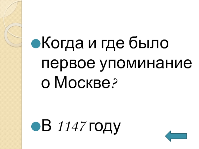 мысе при впадении р. Неглинной в Москву-реку. Первое летописное упоминание о Москве относится к 1147 году.