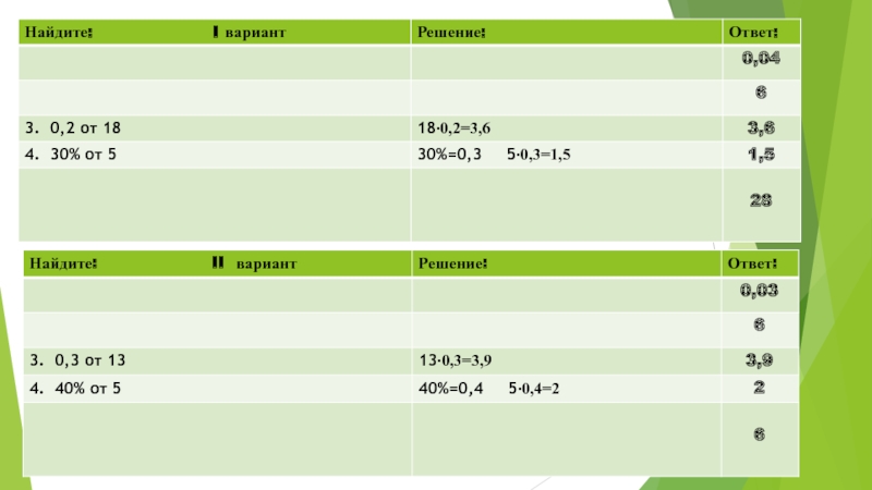 30%; 45%; 50%; 8%; 2%; 120%, 112%.