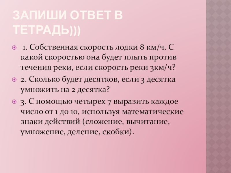 Слайд 4Запиши ответ в тетрадь)))
