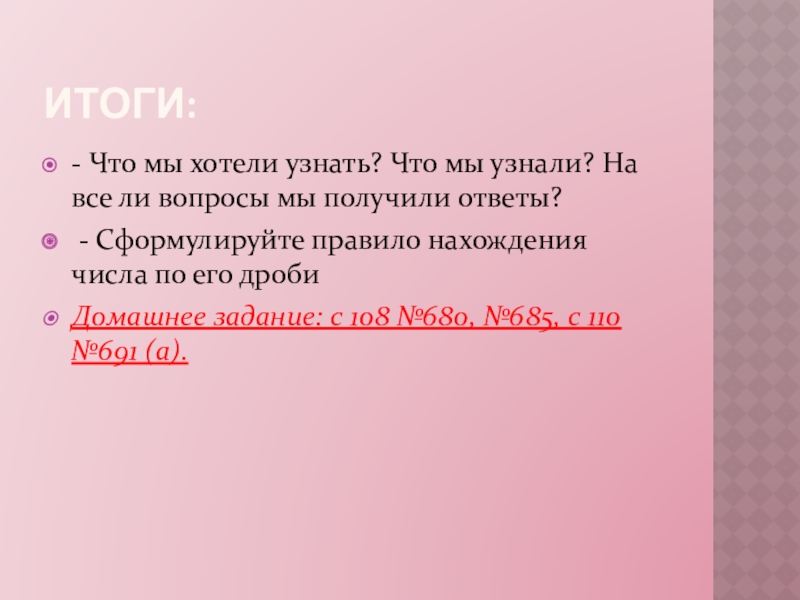 Домашнее задание: с 108 №680, №685, с 110 №691 (а).