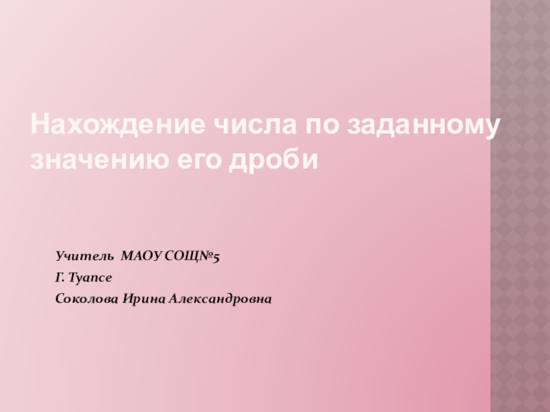 Нахождение числа по заданному значению его дробиУчитель МАОУ СОЩ№5Г. ТуапсеСоколова Ирина Александровна