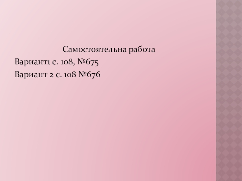 Самостоятельна работаВариант1 с. 108, №675Вариант 2 с. 108 №676