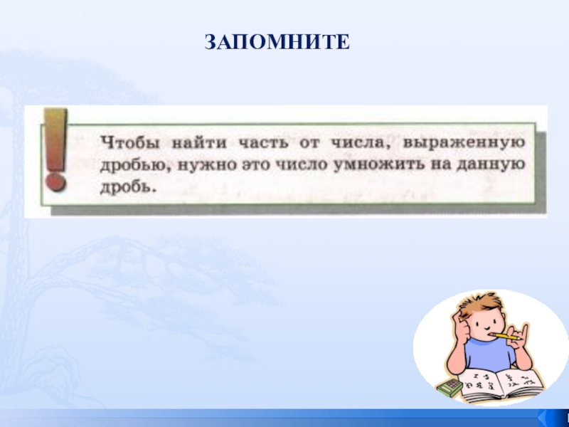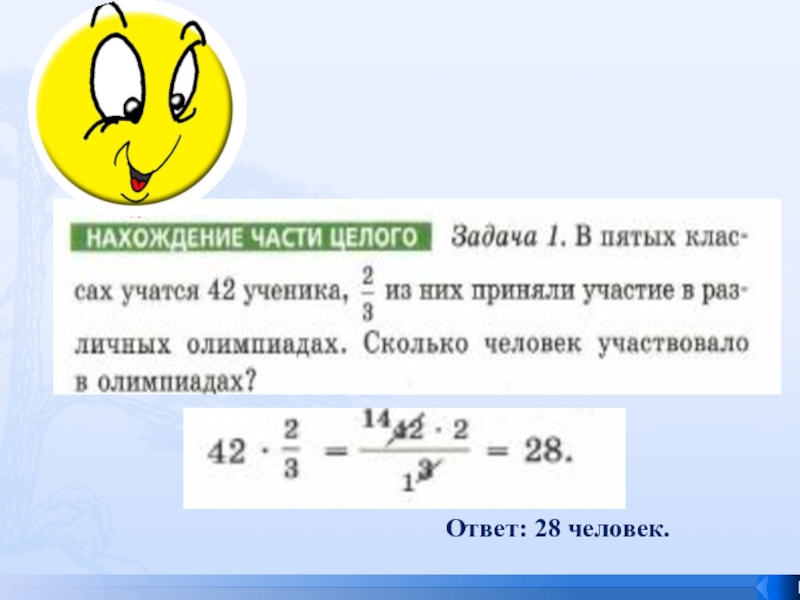 Презентация, доклад по математике на тему Нахождение части целого и целого по его части (5 класс)