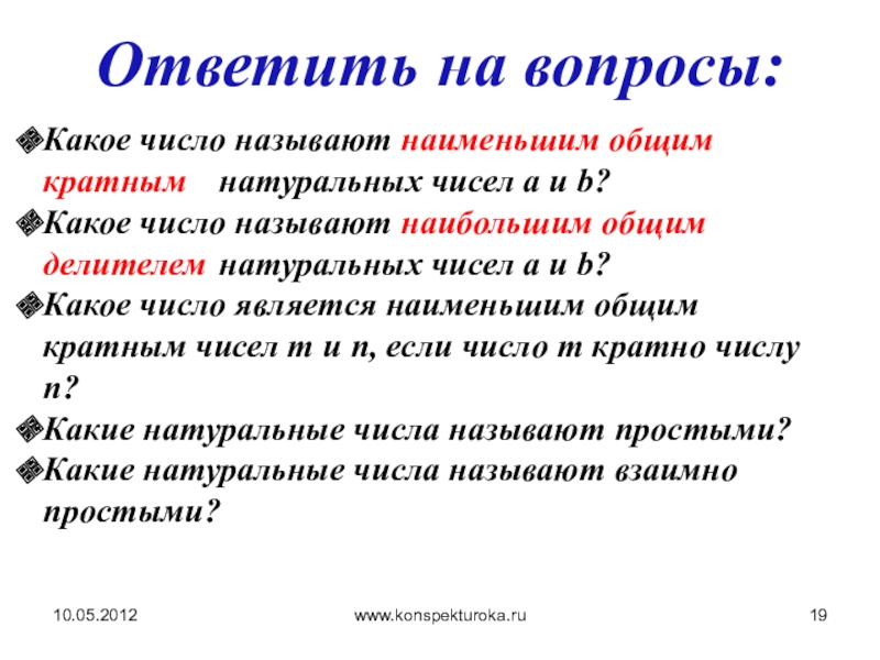 Наименьшее натуральное число, которое делится на каждое из данных натуральных чисел, называется наименьшим общим кратным.