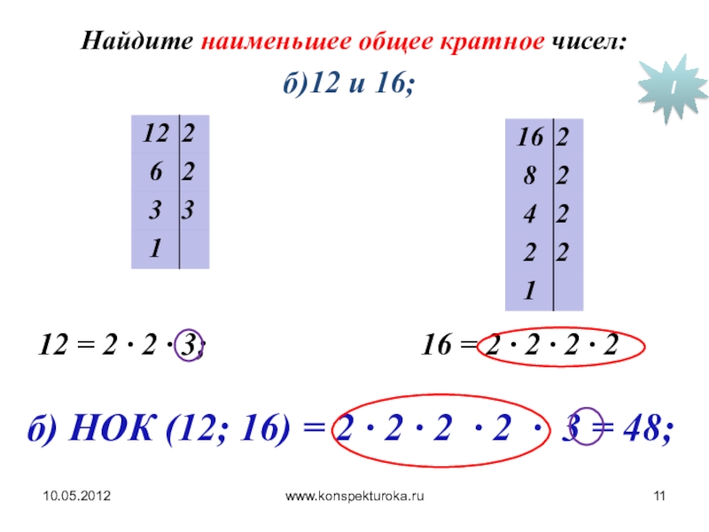 12 = 2 ∙ 2 ∙ 3; 16 = 2 ∙ 2 ∙ 2 ∙ 2
